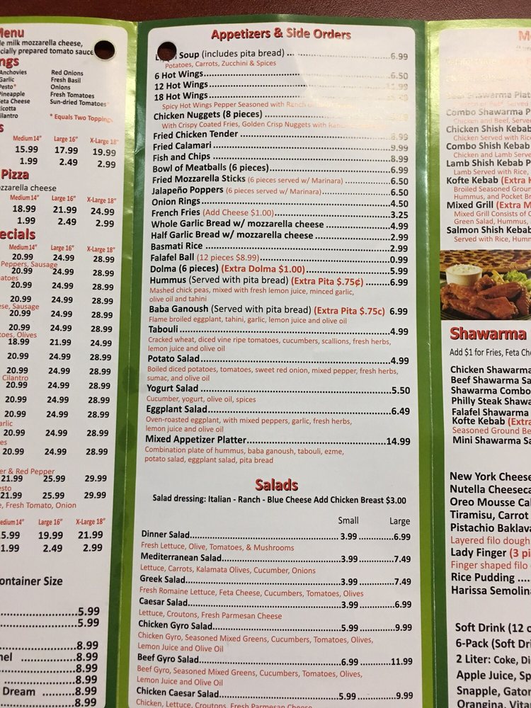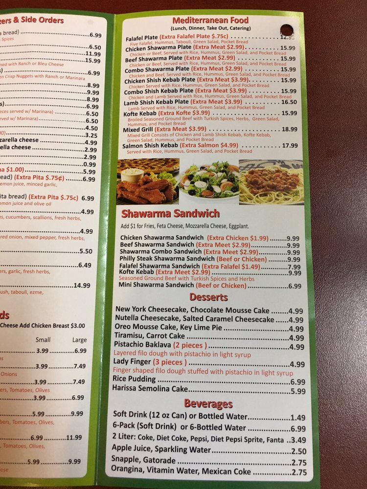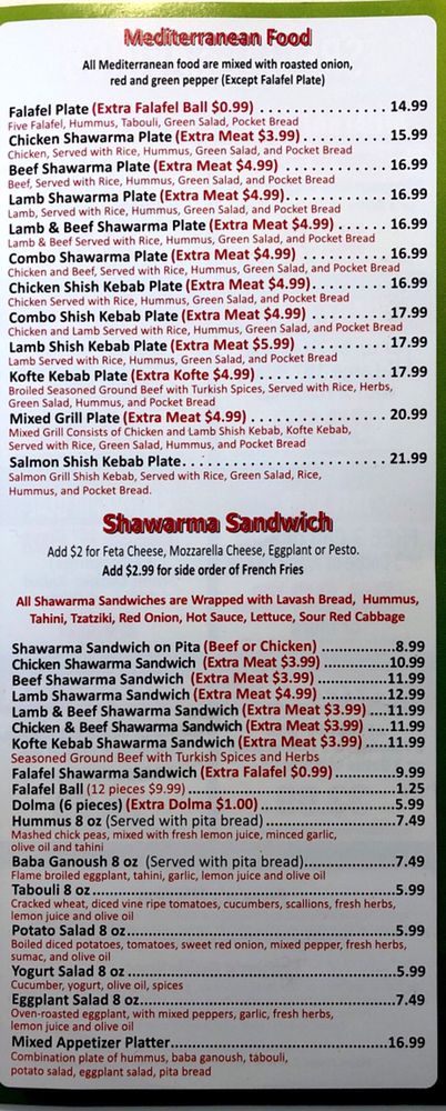 Thinly sliced chicken shawarma, roasted onion, green pepper, and red pepper, house pizza sauce and loads of mozzarella cheese on a hand stretched dough.