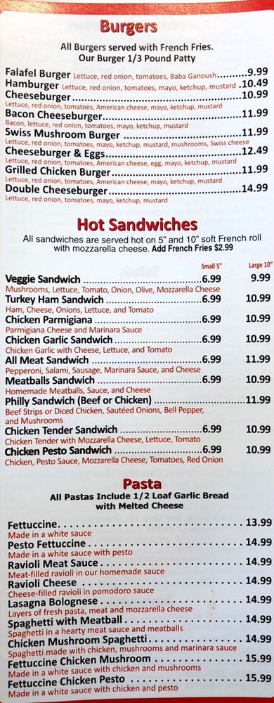 Pesto, mushrooms, black olive, feta cheese and garlic, house pizza sauce and loads of mozzarella cheese on a hand stretched dough.
